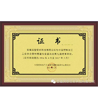 随着4月14日—15日“中国塑料加工工业协会塑料管道专业委员会 第九届四次会员大会 暨2016年塑料管道行业交流会”在四川成都的顺利举行,我公司正式成为“中国塑料加工工业协会塑料管道专业委员会”第九届理事单位。我们会践行在第九届三次理事会议上的承诺:1.带好头,做好模范作用作为安徽省管材业商会会长单...